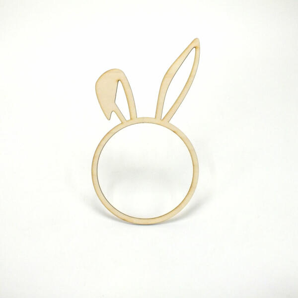 Nyuszifüles díszíthető fa karika, festhető, dekorálható alap.