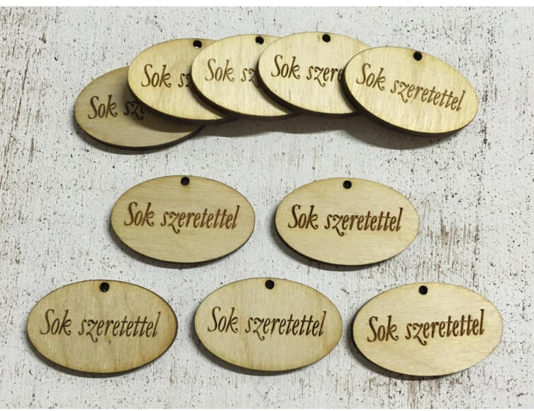 Natúr fa - "Sok szeretettel" ovál táblák 10db/csomag - papelito