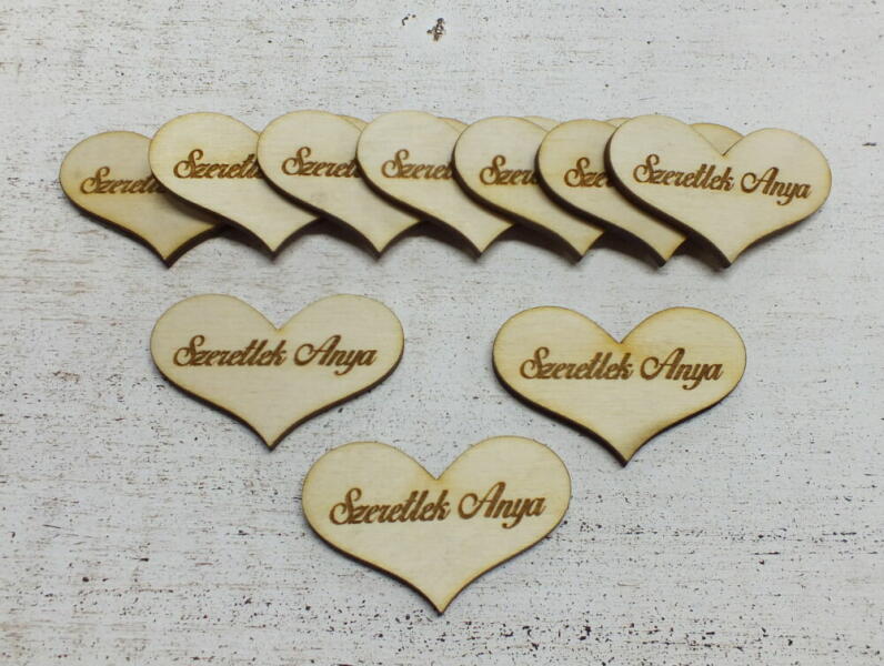 Natúr fa - "Szeretlek Anya" gravírozott szív 10db/csomag - kosarbolt