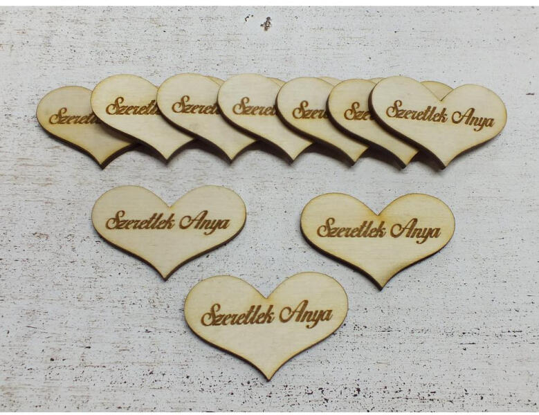 Natúr fa - "Szeretlek Anya" gravírozott szív 10db/csomag - papelito