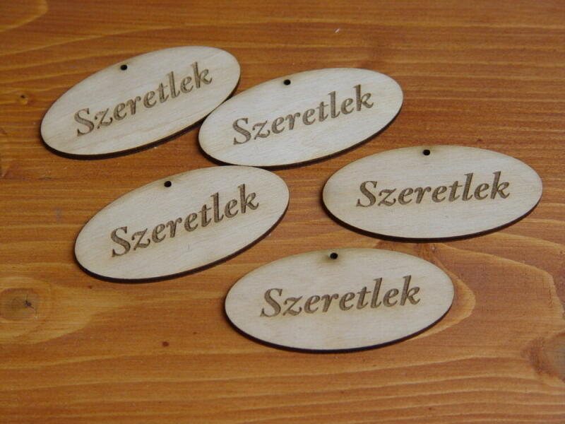 Natúr fa - "Szeretlek" gravírozott ovál táblák 4x8cm 5db/csomag - kosarbolt