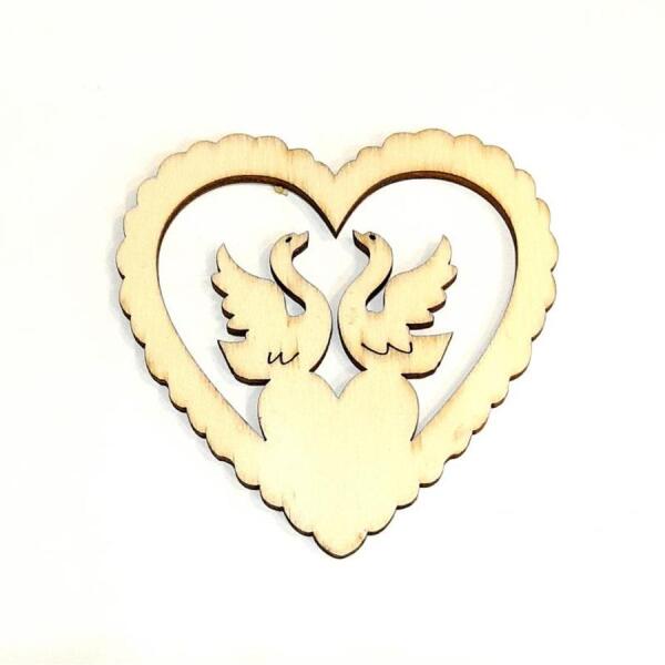 Lézervágott natúr fa szív hattyúkkal rétegelt lemezből.