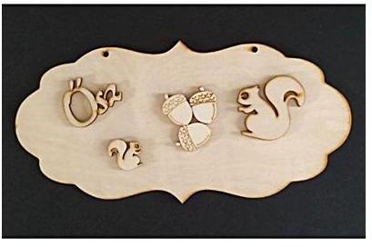 - három makkFesd ki a táblát és a figurákat kedvenc őszi színeidre, díszítsd csipkével, szalaggal, terméssel, egyedi és különleges kopogtatót alkotva belőle.
