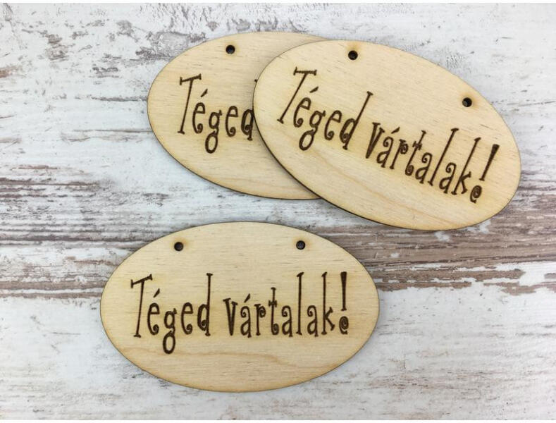 Natúr fa - "Téged vártalak! " ovál tábla 5, 5x9cm 3db/csomag - csinaldmagadshop