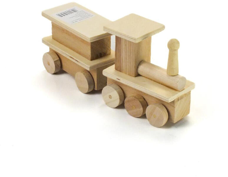 Natúr fából készült 2 részes vonat. Díszíthető, dekorálható felület.