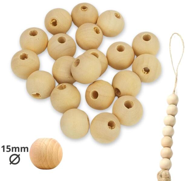 Ezek a natúr fából készült golyók/gyöngyök sokoldalúan felhasználhatóak kreatív projektekhez és dekorációkhoz. A középen található lyuknak köszönhetően könnyedén felfűzhetők, így rengeteg lehetőséget kínálnak különböző kézműves és hobbi projektekhez. Természetes, natúr fa színük miatt jól kombinálhatók más színekkel és anyagokkal, így bármilyen stílushoz illeszkednek. Felhasználási lehetőségek: