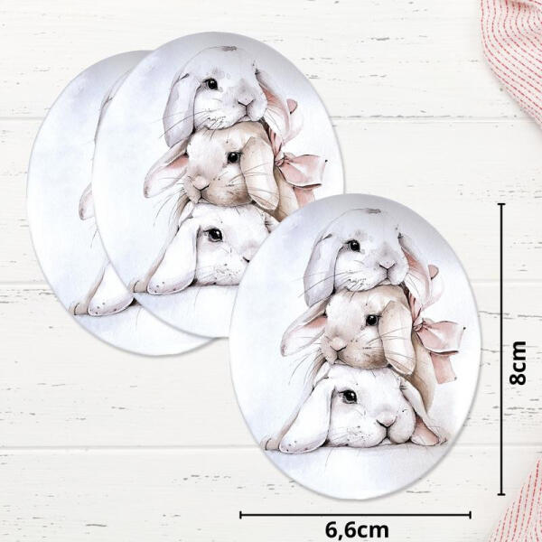 Nyomtatott dekorkarton - Masnis nyuszik ovál tábla 3db/csomag - csinaldmagadshop