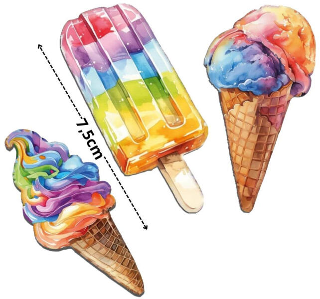 Nyomtatott dekorkarton - Színes fagyik - élénk 3db/csomag