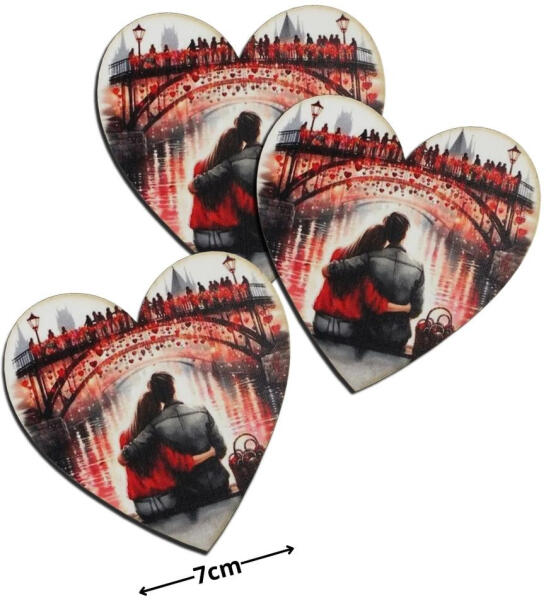 Nyomtatott dekorkarton - Szív táblák 3db/cs Szerelmes híd