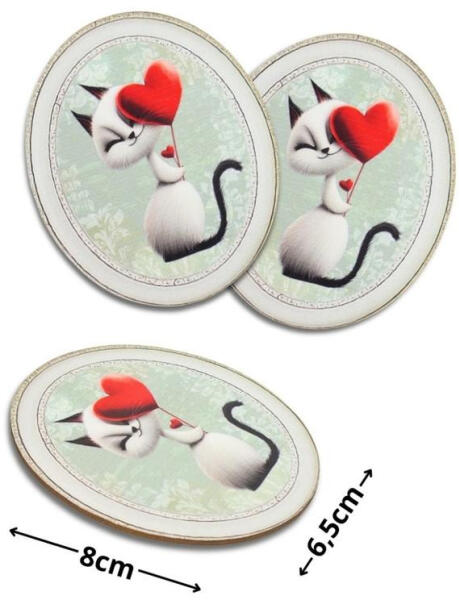 Nyomtatott dekorkarton - Valentin napi cica ovál tábla 3db/cs - csinaldmagadshop