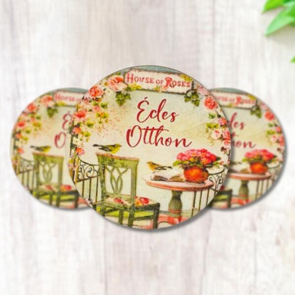 Nyomtatott fa tábla - Édes Otthon (House of roses) kör 3db/cs