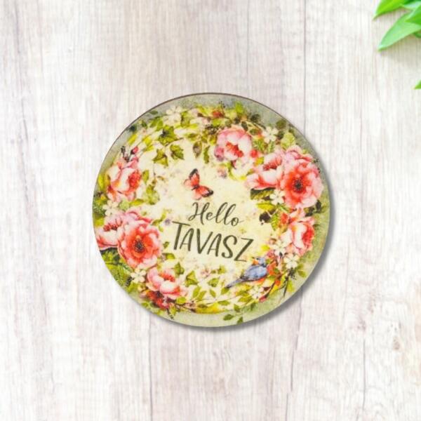 Nyomtatott fa tábla - Hello tavasz - lepkés, kör 1db - kosarbolt