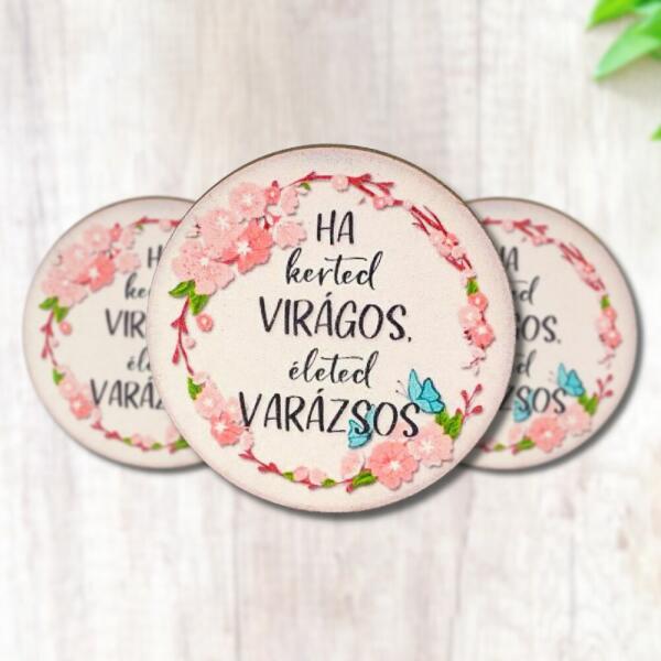 Nyomtatott fa tábla - Kerted virágos - kör 3db/cs - kosarbolt