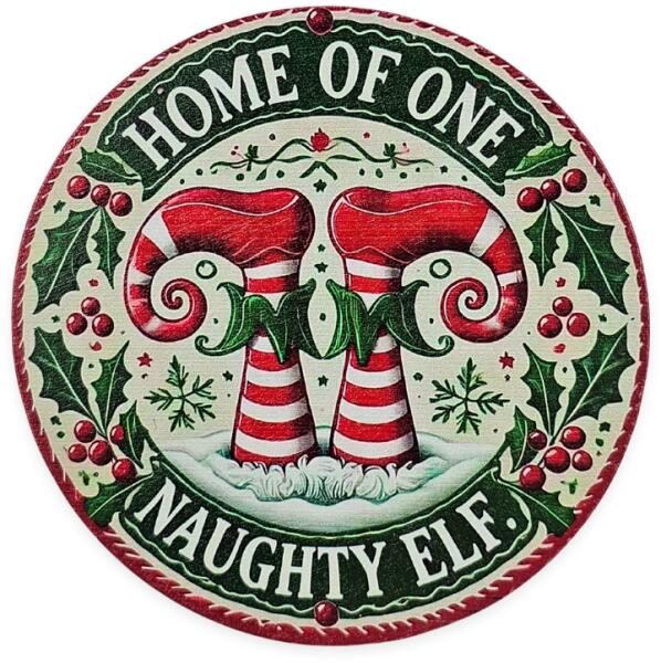 Nyomtatott fa tábla koszorú közép - Elf lábak 11, 8cm - kosarbolt