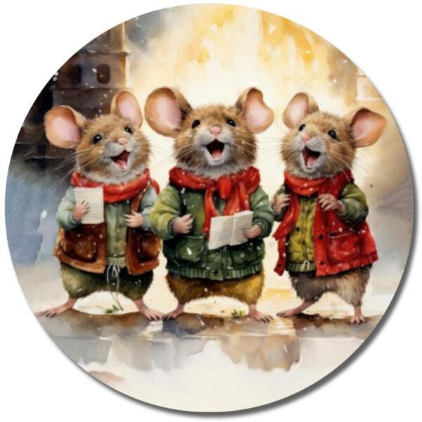 Nyomtatott fa tábla koszorú közép - Éneklő egérkék 11, 8cm - kosarbolt