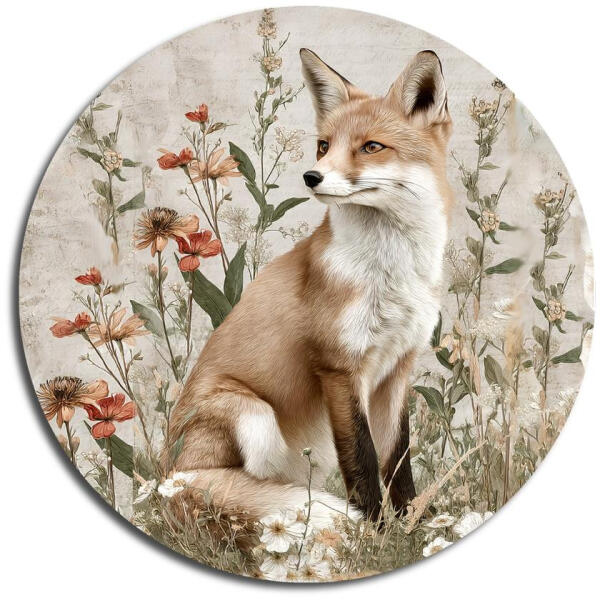 Nyomtatott fa tábla koszorú közép - Erdei állatok - róka 11, 8cm - papelito