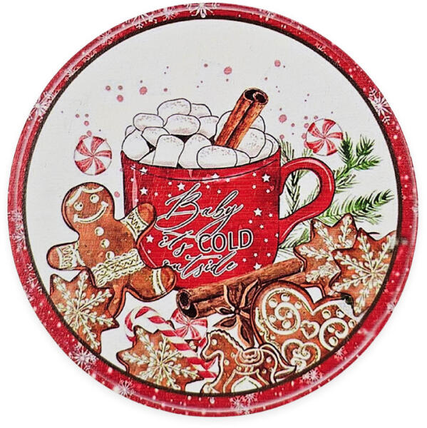 Nyomtatott fa tábla koszorú közép - Fahéjas forró csoki 11, 8cm - papelito