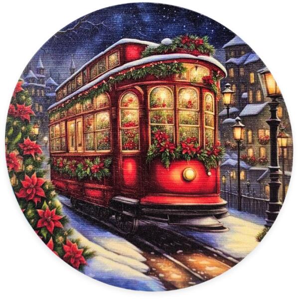 Nyomtatott fa tábla koszorú közép - Karácsonyi villamos 14, 8cm - kosarbolt