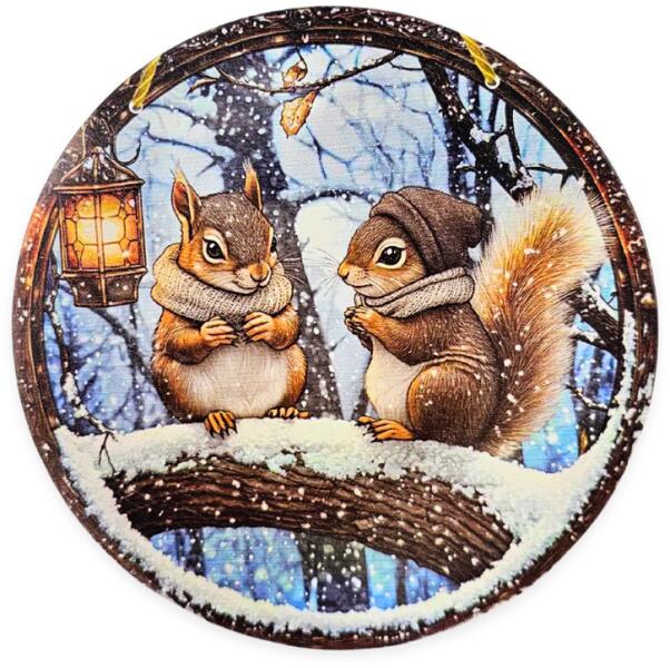 Nyomtatott fa tábla koszorú közép - Két mókus 11, 8cm
