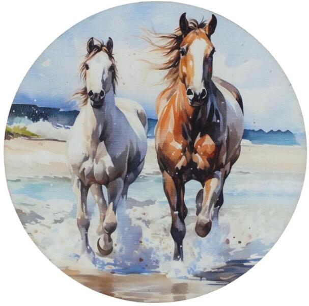 Nyomtatott fa tábla koszorú közép - Lovak tengerparton 11, 8