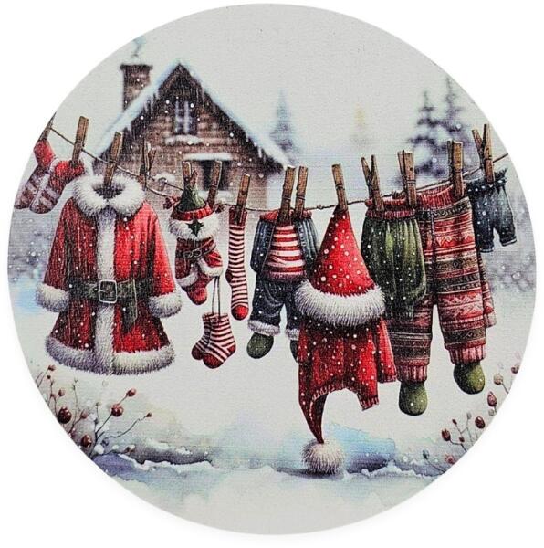 Nyomtatott fa tábla koszorú közép - Télapó ruhái 11, 8cm