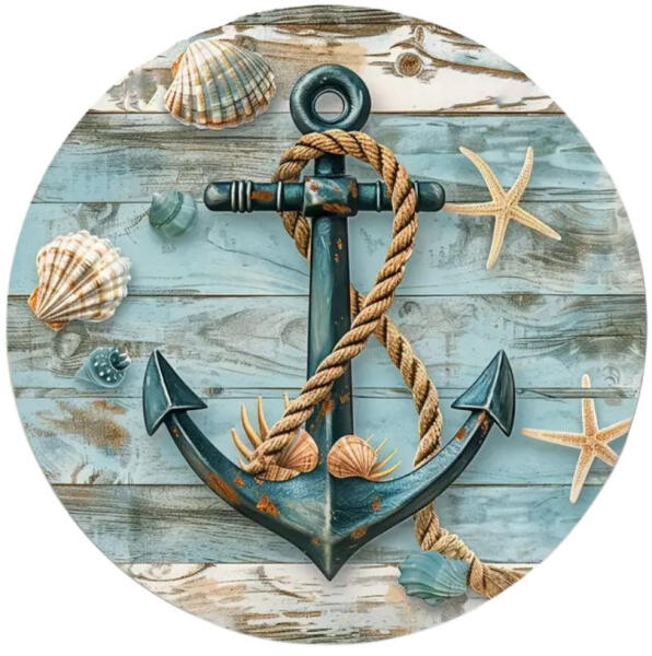 Nyomtatott fa tábla koszorú közép - Tengeres vasmacska 11, 8cm - papelito