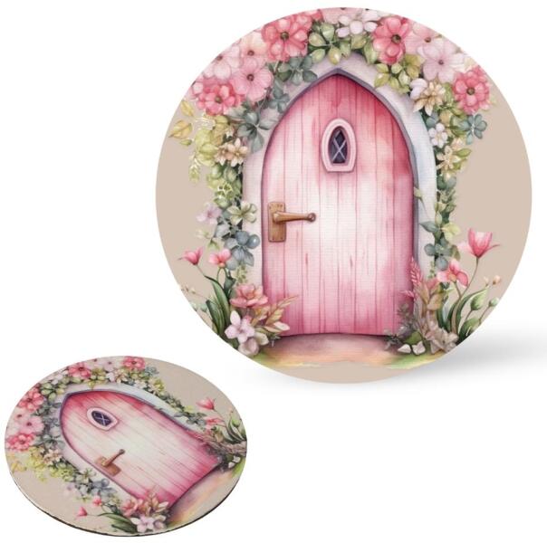 Nyomtatott fa tábla koszorú közép - Tündérajtó rózsaszín 11, 8