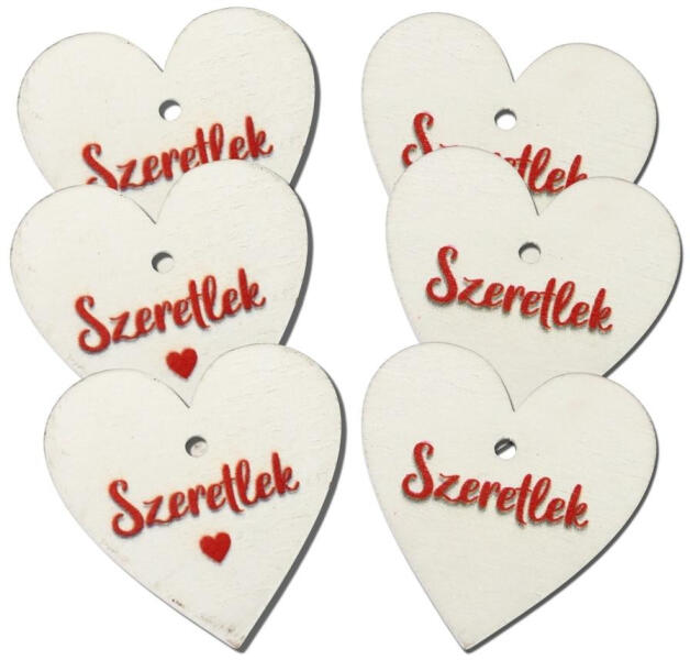 Nyomtatott fa tábla - Szeretlek szív 4cm 6db