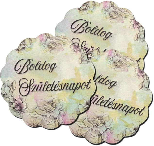 Nyomtatott fa tábla - Virágos tábla - B. születésnapot 3db/csomag