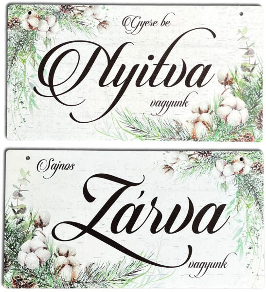 Nyomtatott fa tábla - Zárva-Nyitva tábla - téli gyapotvirággal 24, 3x13cm - papelito