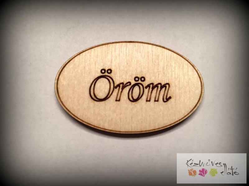 Lézervágott, natúr fa "Öröm" feliratú kis táblácska