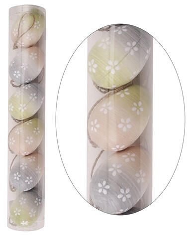 Húsvéti tojásdekoráció virágos akasztóval 6 db/cső