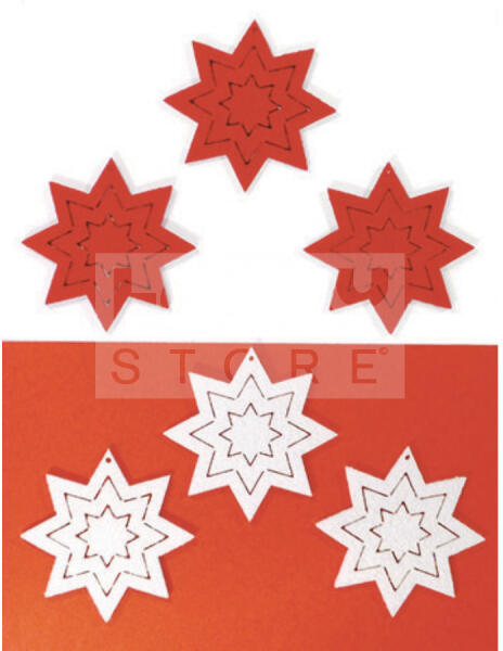 Pentacolor Kft Filcfigura - Csillag, vonalas g. , fehér-piros (6 db/cs, átm. kb. : 6 cm) 23263