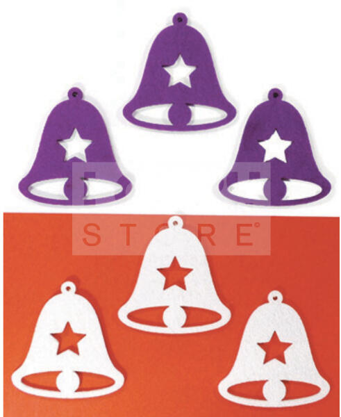 Pentacolor Kft Filcfigura - Harang, csillagos, fehér-lila (6 db/cs, átm. kb. : 6 cm) 23278