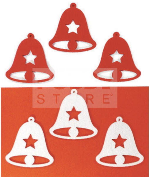 Pentacolor Kft Filcfigura - Harang, csillagos, fehér-piros (6 db/cs, átm. kb. : 6 cm) 23277