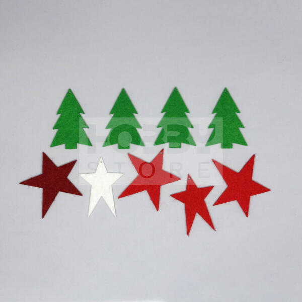 Filcfigura karácsonyi vegyes ("E" 9 db/cs) 35484 A barkácsfilcek és a hobbi filcek rengeteg színárnyalatban kaphatóak. Ragasztható, varrható, ideális bábok, füzetborítók, képek, rátétek könnyű és gyors elkészítéséhez és díszítéséhez. Használhatóak táskák és különböző textil termékek, dekorgumik díszítéséhez is. Különösen ajánlott óvodásoknak, kisiskolásoknak. Ezek mellett rengeteg kreatív ötletet ad az alkotóknak. A dekor filc nem foszlik, könnyen kezelhető anyag. Kaphatóak filctekercsek ben, filc lap okban különböző vastagságban és előre kivágott több száz féle és színű mintában is. Gyártó: Pentacolor Kft