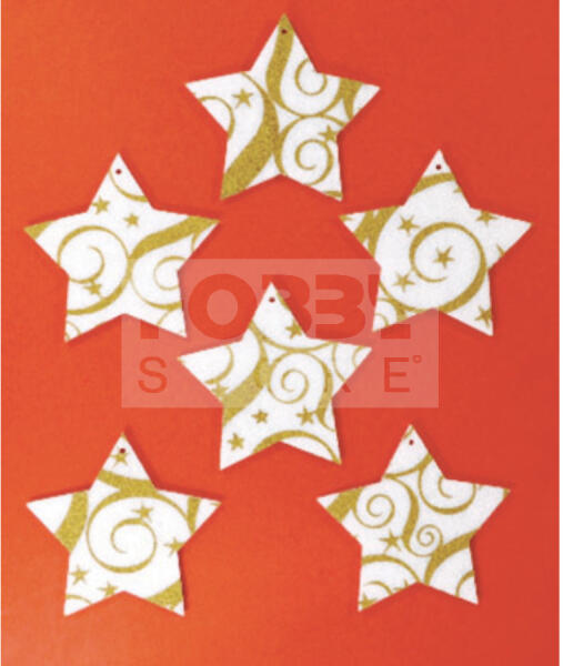 Filcfigura - Ötágú csillag, festett, fehér-arany (6 db/cs, átm. kb. : 6 cm) 23272 A barkácsfilcek és a hobbi filcek rengeteg színárnyalatban kaphatóak. Ragasztható, varrható, ideális bábok, füzetborítók, képek, rátétek könnyű és gyors elkészítéséhez és díszítéséhez. Használhatóak táskák és különböző textil termékek, dekorgumik díszítéséhez is. Különösen ajánlott óvodásoknak, kisiskolásoknak. Ezek mellett rengeteg kreatív ötletet ad az alkotóknak. A dekor filc nem foszlik, könnyen kezelhető anyag. Kaphatóak filctekercsek ben, filc lap okban különböző vastagságban és előre kivágott több száz féle és színű mintában is. Gyártó: Pentacolor Kft