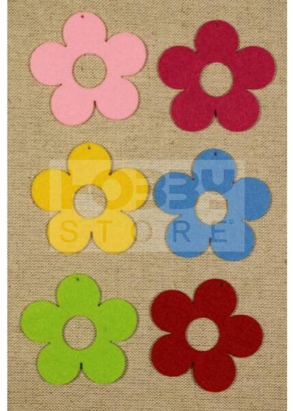 Filcfigura - Virág lyukas közepű ötszirmú közepes (6 db/cs) 27331 A barkácsfilcek és a hobbi filcek rengeteg színárnyalatban kaphatóak. Ragasztható, varrható, ideális bábok, füzetborítók, képek, rátétek könnyű és gyors elkészítéséhez és díszítéséhez. Használhatóak táskák és különböző textil termékek, dekorgumik díszítéséhez is. Különösen ajánlott óvodásoknak, kisiskolásoknak. Ezek mellett rengeteg kreatív ötletet ad az alkotóknak. A dekor filc nem foszlik, könnyen kezelhető anyag. Kaphatóak filctekercsek ben, filc lap okban különböző vastagságban és előre kivágott több száz féle és színű mintában is. Gyártó: Pentacolor Kft