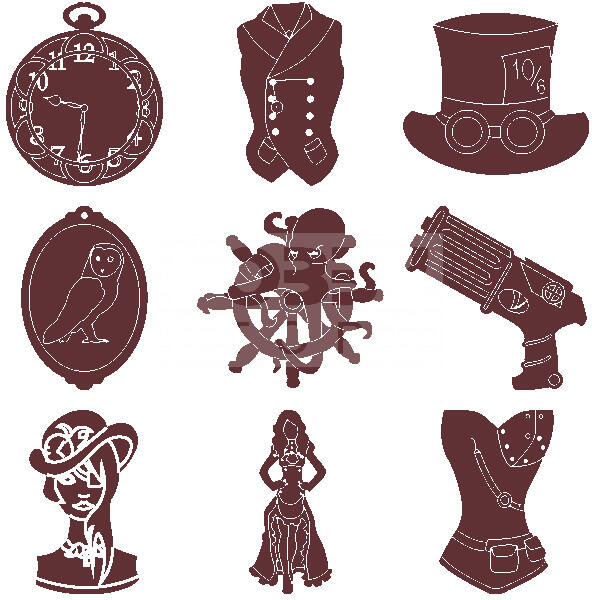 Pentacolor Kft Pentart Steampunk fafigura készlet dobozban 54 db/készlet 21690