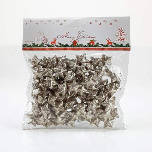Kisebb méretű csillámos polisztirol csillagok, fali, asztali dekorációk megalkotásához. Egyedi készítmények elkészítéséhez is ajánlott dekorációs kiegészítő.