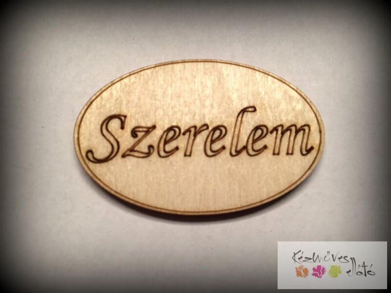 Lézervágott, natúr fa "Szerelem" feliratú kis táblácska
