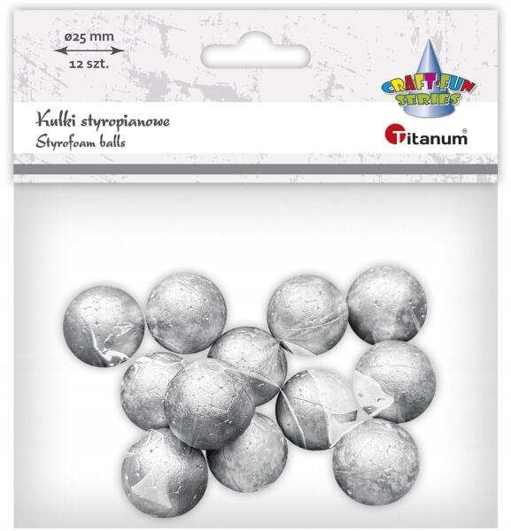 Titanum hungarocell golyók, 12 db, ezüst, 25 mm, ideális barkácsoláshoz (5903714551361)ALLEGRO
