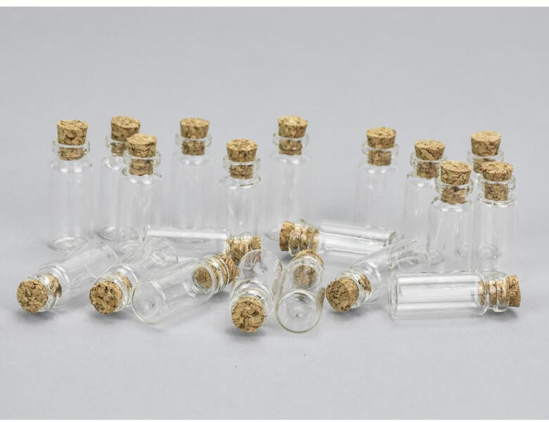 Mini üvegcsék, fantáziadús dekoráció megalkotásához. Homok, kagylók, gyöngyök töltésére egyaránt. Tehetünk bele üzeneteket vagy kívánságokat. Esküvői köszönő ajándékokat is készíthetünk belőle